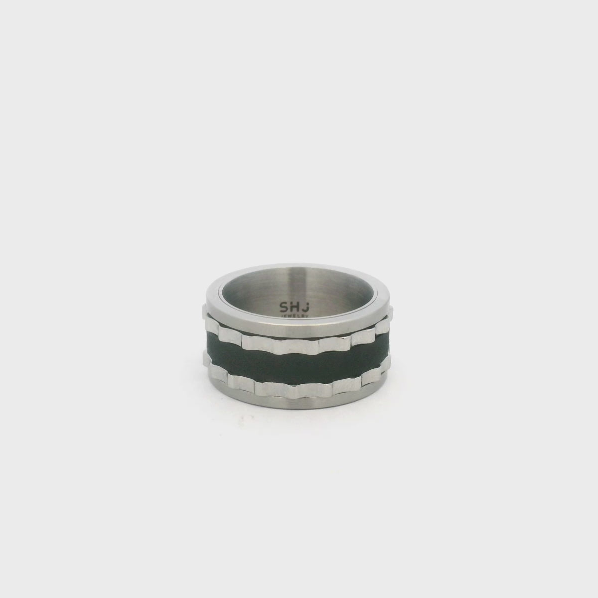 Introducing the Double Gears Spinning Ring – a masterpiece of engineering and style! This ring features a robust stainless steel construction with a sleek carbon fiber inlaid band, flanked by two spinning gears. Available in eye-catching silver, luxurious gold, or bold blue, this 12mm band is designed to make a statement.