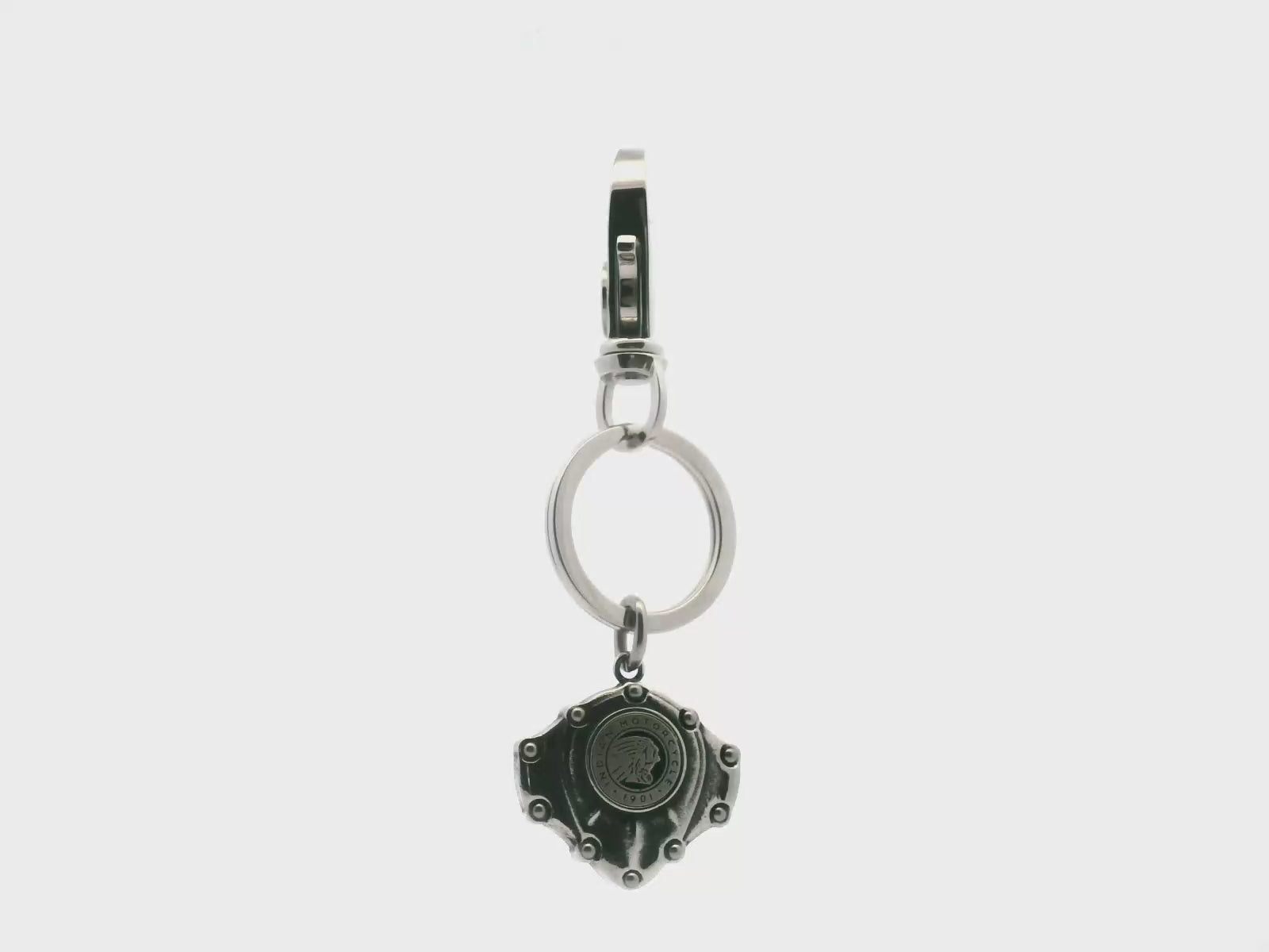 Take a risk and show off your adventurous side with our Silver Cam Cover Keychain. Featuring the bold Indian Motorcycle headdress logo on a silver antiqued intake valve design, this keychain doubles as a statement piece for your bag with its large lobster clasp. Embrace the challenge and add it to your collection now!