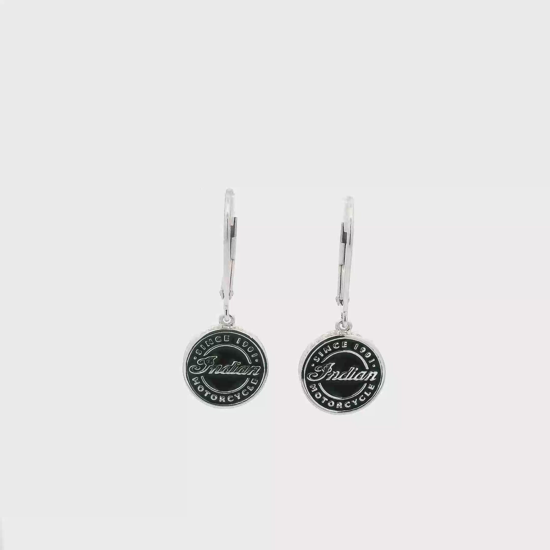 Make a statement with the Roundel Script & Bling Drop Earrings, expertly crafted from high-quality sterling silver. These stylish lever-back drop earrings feature a roundel pendant with the iconic "Indian Motorcycle" script logo, displayed on a black background and surrounded by shimmering white stones. The secure lever-back design ensures a comfortable fit, making these earrings perfect for both everyday wear and special occasions. Celebrate the enduring legacy of Indian Motorcycle while enhancing your look with these beautiful earrings.