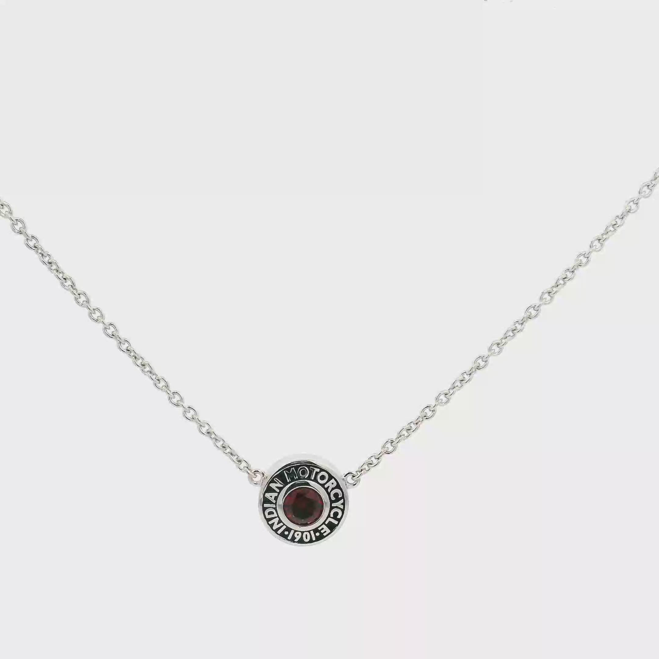 Fuel your passion for adventure with the Rivet & Red Stone Necklace, a bold and dynamic piece inspired by the legendary Indian Motorcycle legacy. Made from sterling silver, this unique rivet design encircles a brilliant faceted red stone, symbolizing power and energy. With its adjustable chain, this versatile necklace layers beautifully or stands out as a statement piece on its own. A must-have for riders and Indian Motorcycle enthusiasts who want to showcase their passion with style.