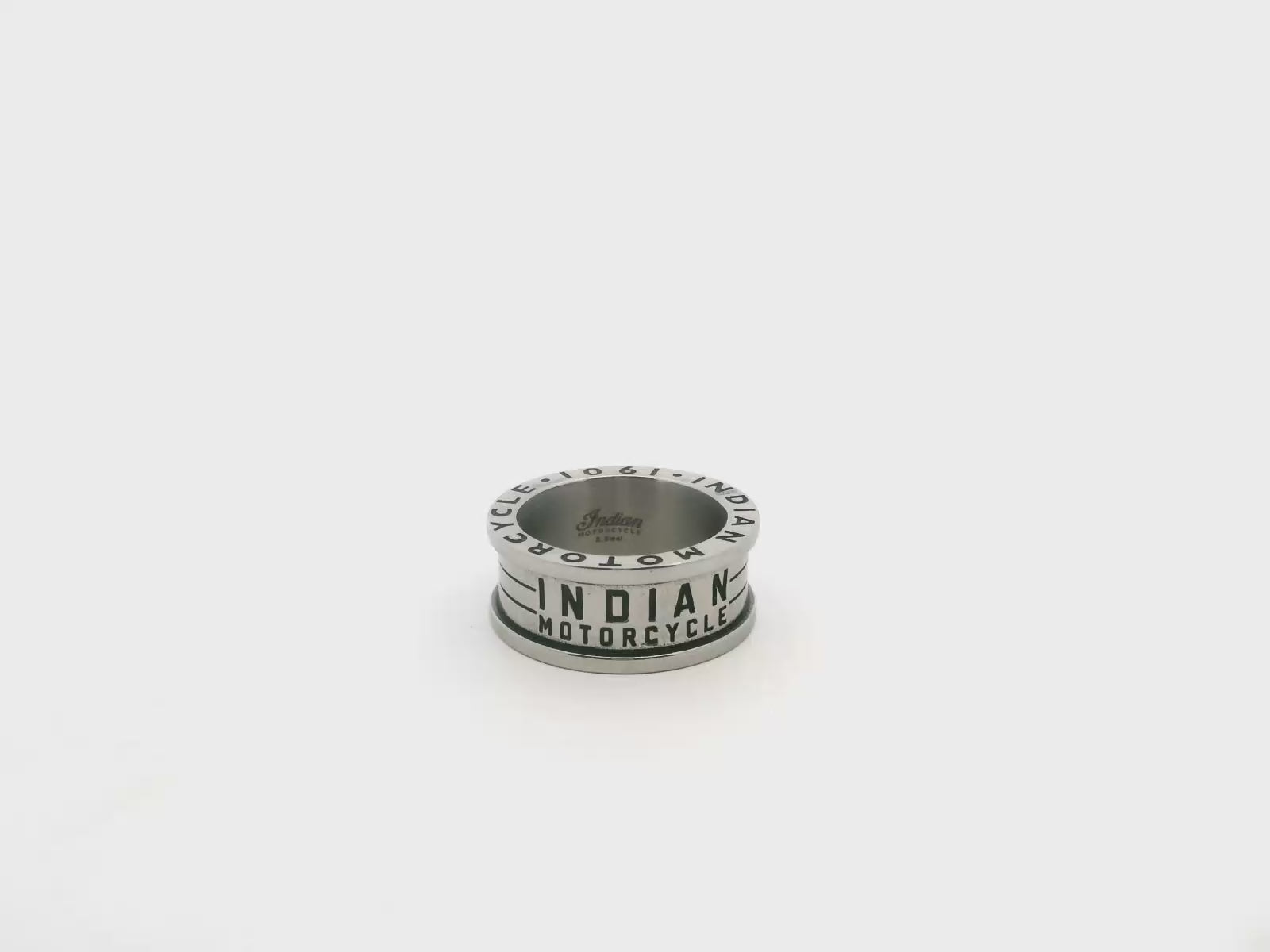The Timeless Trail Band Ring combines bold industrial style with refined craftsmanship. Crafted in durable stainless steel with a PVD finish, this wide cigar band ring for women features sleek, modern lines and the iconic Indian Motorcycle text. Perfect for those who appreciate strong, minimalist designs, this statement ring seamlessly blends sophistication with edge. Available in whole sizes 5 - 10* for a perfect fit.