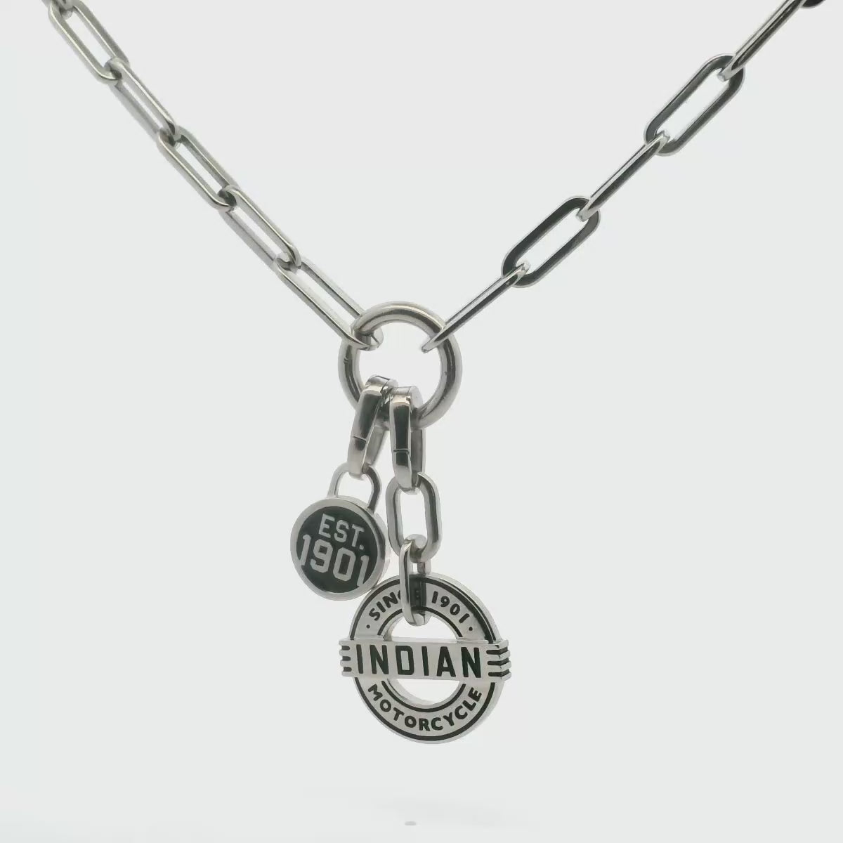 The Timeless Trail Necklace is made for those who live for the open road. With a bold dual-pendant design featuring the Indian Motorcycle emblem, it’s a nod to the brand’s storied heritage. Crafted from surgical-grade stainless steel, it’s tough enough for the ride and stylish enough for anywhere else. The paperclip chain adds a modern edge, making it a solid everyday piece. Whether you're on your bike or off, this necklace keeps your passion close. A perfect gift for any rider.