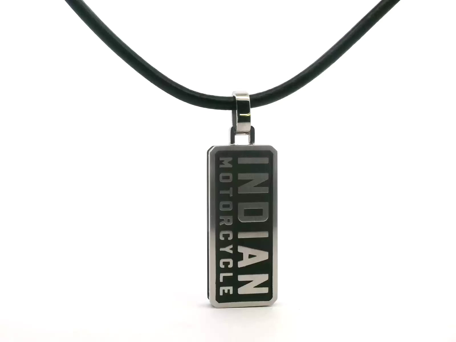 Upgrade your accessory game with the Classic Rectangle Double Sided Necklace, crafted from high-quality stainless steel and featuring a unique reversible pendant. One side showcases a sleek silver background with black lettering, while the colors are inverted on the other side, offering versatility and style. The durable leather chain and secure lobster clasp ensure a comfortable and reliable fit, making it perfect for both everyday wear and special occasions. Embrace the legacy of Indian Motorcycle with this distinct and stylish piece.